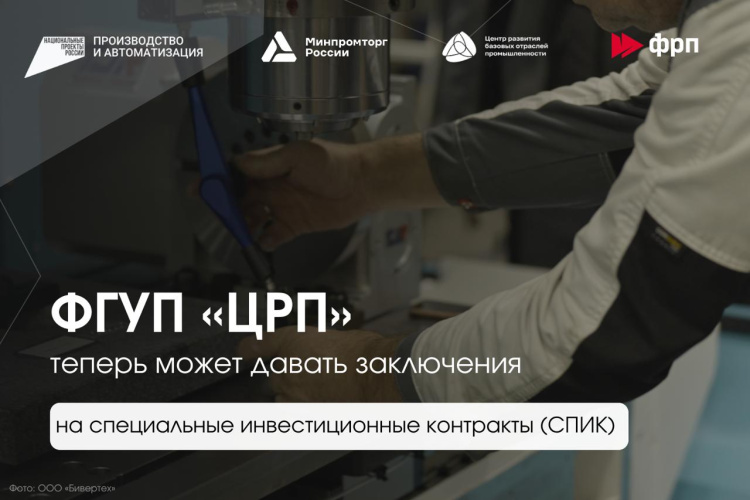 ФГУП «Центр развития базовых отраслей промышленности» включено в перечень российских научных и инфраструктурных организаций, имеющих право давать заключения, которые подтверждают возможность производства промышленной продукции на основе современных технологий в целях заключения специальных инвестиционных контрактов (СПИК), Распоряжением Правительства Российской Федерации от 28 января 2026 года № 119-р. Соответствующие изменения внесены в перечень, утвержденный распоряжением Правительства Российской Федерации от 12 апреля 2020 года № 994-р.